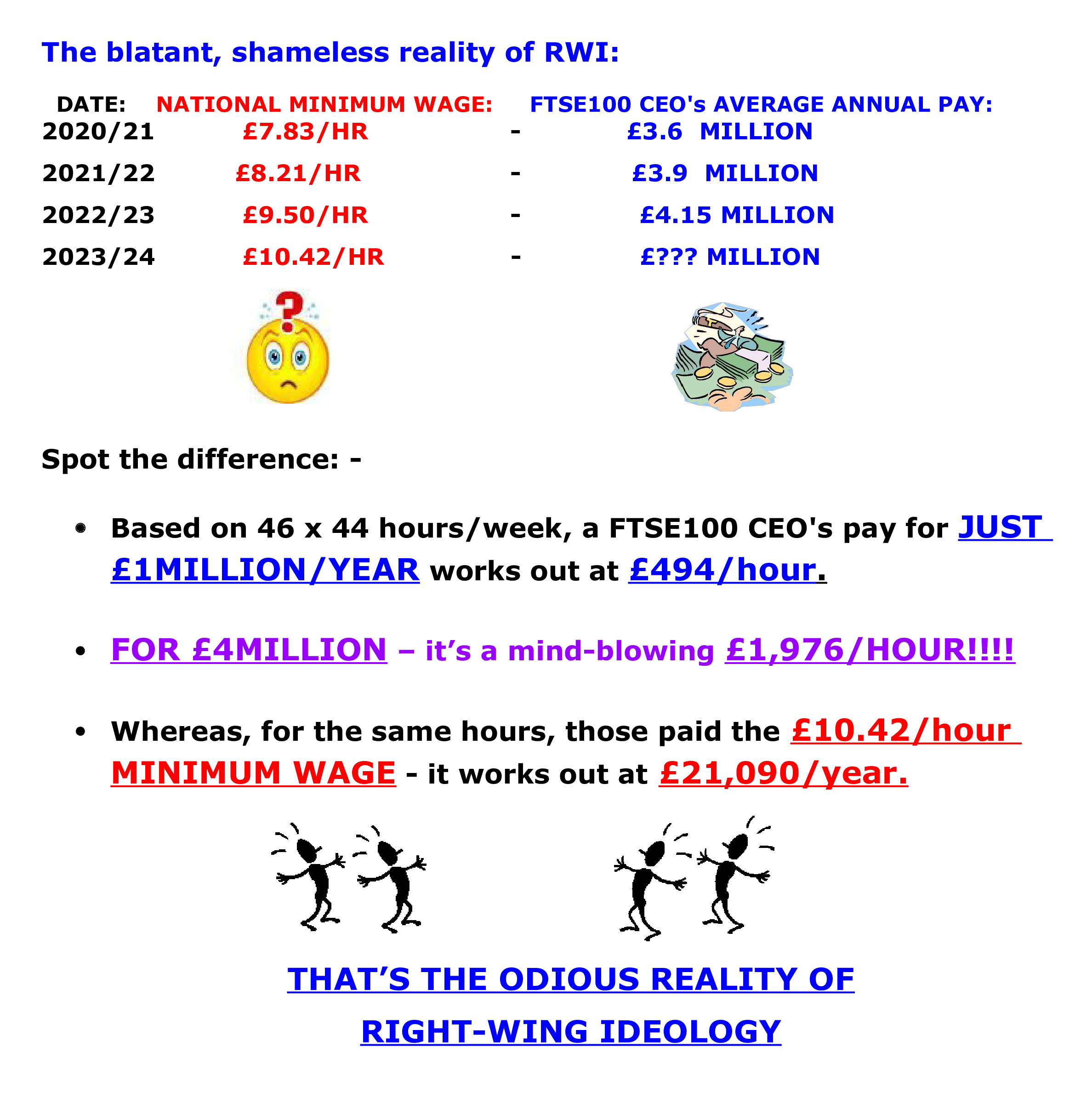 – and CEOs get to rake in £millions/annum, wheras £10.42/hr is considered sufficient wage for millions of others.
