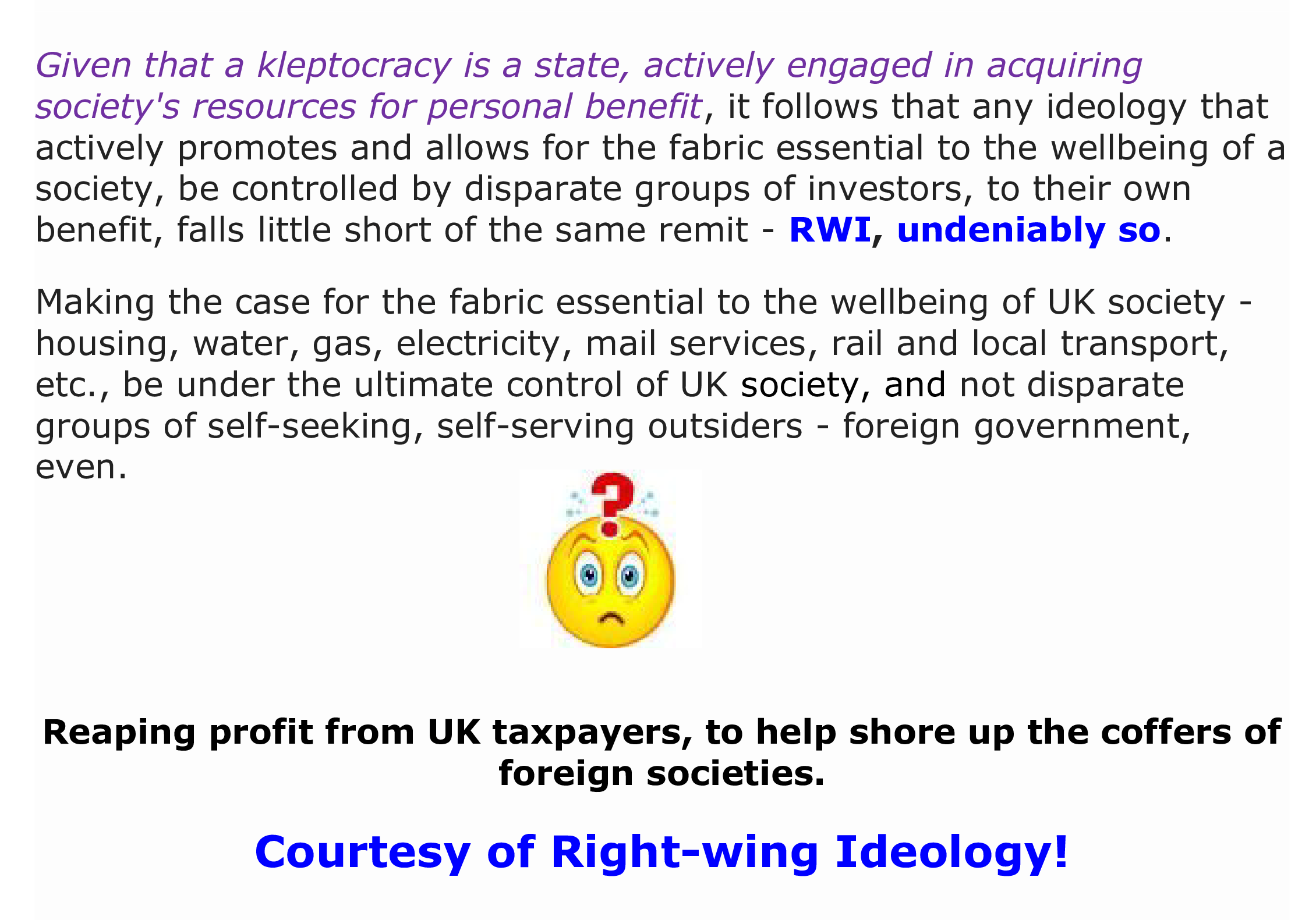 The 1980s brought with it the full blown, unbridled nature of RWI, exposing UK society to global Capitalism. A situation that exists to this day, here and now, in the 3rd decade of the 21st century. As witness the continuing exploitation of UK’s privatised, public services gifted to the boardrooms of the global corporate world – (yes, ‘gifted’).