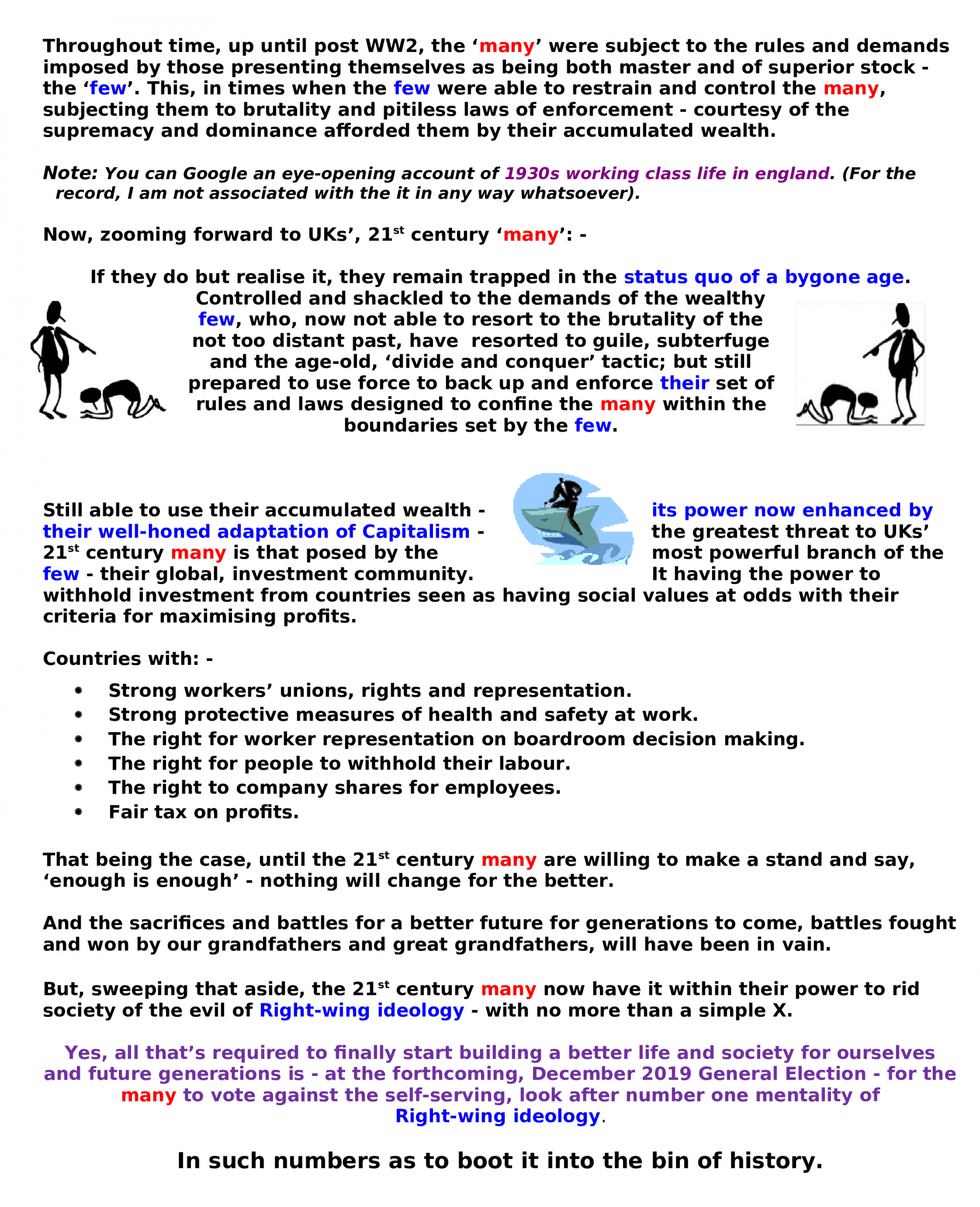 Whether it leads to the UK leaving or remaining in the EU, the last thing the many need is the nightmare scenario of the Tories still being  in power after the 2019, 12th of December General Election, leaving UK society, still in the grip of the status quo of a bygone age – at the mercy of its insidious Right-wing ideology.